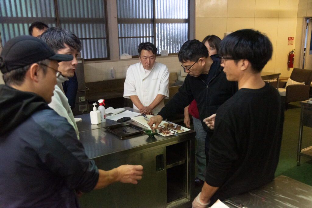 旅館の皆さんも積極的に質問しつつ、部位や処理のポイントを丁寧に説明いただきながら、ヒレ・ロース・バラなど各部位ごとに取り分ける作業を体験されていました。つかさや旅館の若旦那の「性別や個体差で肉質が変化するため、実際に触れて学ぶことが大切」という言葉が印象的で、真剣に取り組む姿勢から“湯田川らしいジビエ料理”を模索する意気込みが伝わってきました。
