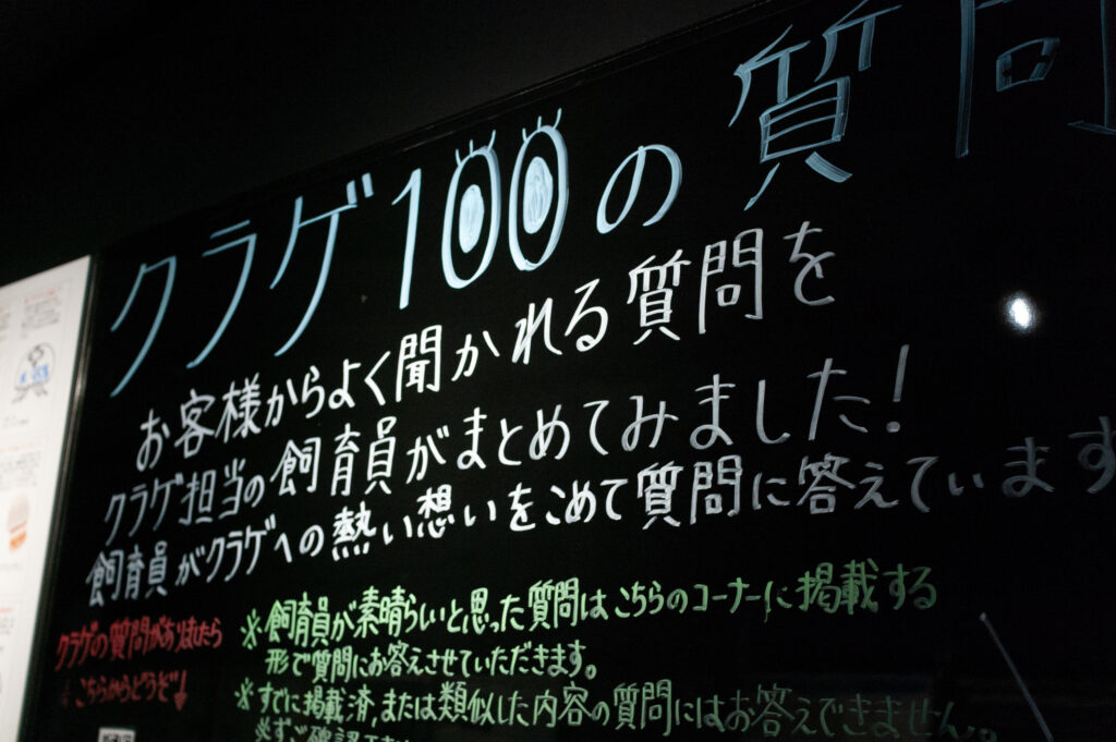 コロナ禍にSNSで始まった「クラゲ100の質問」。飼育員が寄せられた疑問に直筆イラスト付きで答え続け、館内でも人気の展示となりました。現在も毎週のように質問が寄せられますが、大半はこの100の質問でカバーされているそう。新たなマニアックな質問が集まれば、また回答していくとのことです。