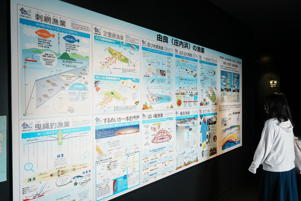 また、春夏秋冬の庄内浜の魚や料理を紹介するパネル展示も充実。鶴岡を訪れたからこそ、地域を知ってほしいという思いが込められています。