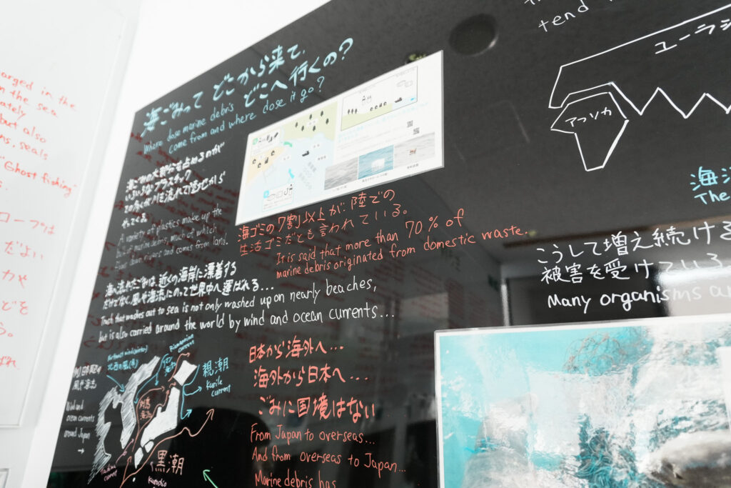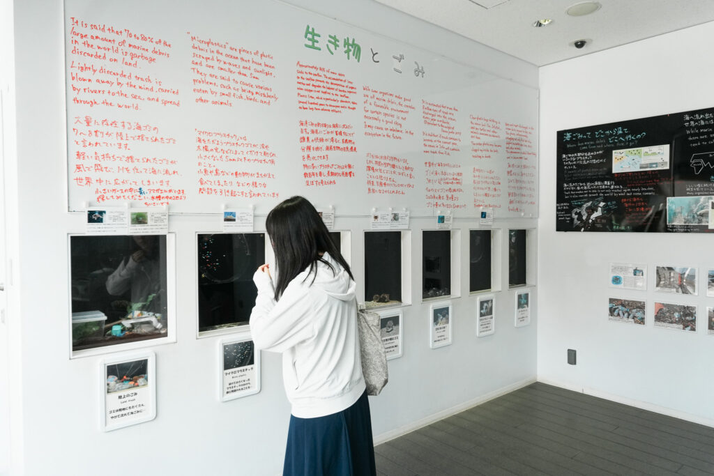 近年はSDGsの重要性も高まる中、水族館の責務のひとつとしてこの展示を展開。解説文も飼育員が一文字ずつ記しており、私たちの生活と海の環境が密接につながっていることを改めて教えてくれています。