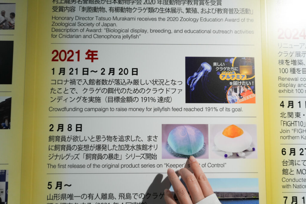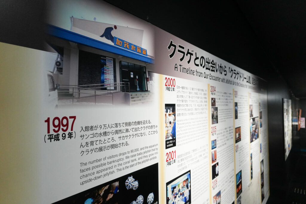 かつては経営の危機にも直面した加茂水族館。しかしクラゲ展示に力を入れたことをきっかけに、今では世界有数のクラゲ水族館へと成長しました。館内にはその歴史をたどる展示もあり、挑戦と工夫を重ねてきた歩みを知ることができます。これからも展示が追加され、歴史が刻まれていきます。今後の展開も楽しみです。